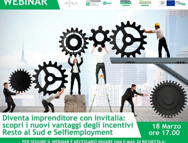 Promosso ed organizzato da Federfranchising, Giovani Imprenditori ed Impresa Donna di Confesercenti insieme ad Invitalia e con il supporto dell’Eurosportello, giovedì 18 marzo alle ore 17.00 si terrà il webinar “Diventa imprenditore con Invitalia: scopri i nuovi vantaggi degli incentivi Resto al Sud e SELFIEmployment”.